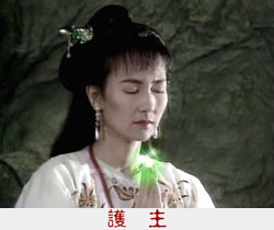 白素貞雙掌合十跪於地上,只見法海得意洋洋,那有什麼觀音大士的影子?眼看著小青就要被帶回金山寺,突然一道金光自天空冉冉而下,光芒萬丈,格外耀眼。觀音大士立於蓮花座上對著法海說道:「阿彌陀佛!法海且慢!那小青天資悟性超人一等,今為護主惹出禍事,請法海將她交於我佛,我將會帶她至南海,安心修道。」觀音慈眉善目,不嚴而威。